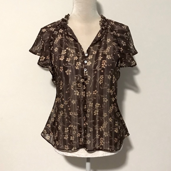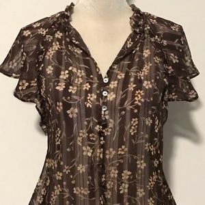 Beautiful brown floral sheer blouse. Missing tag I believe it’s a S/M. Measurements added asap!