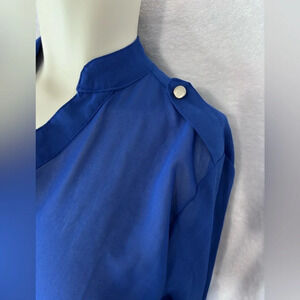 Sheer Blouse Roll Tab Sleeve Button Down Top Casual Shirt