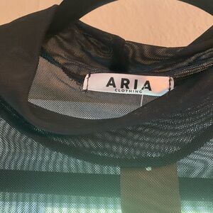 Long sleeve Sheer black net like body suit that snaps.