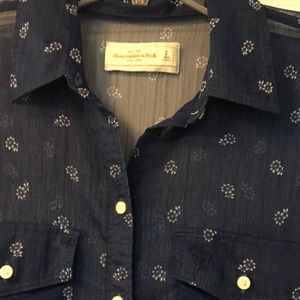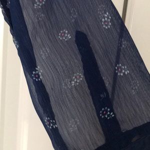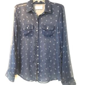 Sheer collared button down. Perfect condition. Navy blue with white flowers.