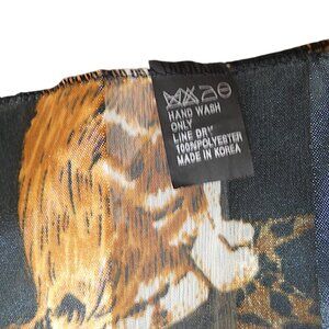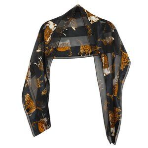 Playful and chic, this sheer black scarf with bold golden-orange cat print adds a quirky touch to any outfit. Lightweight and versatile, it can be styled as a neck scarf, head wrap, shawl, or even tied on a bag for an instant statement.
