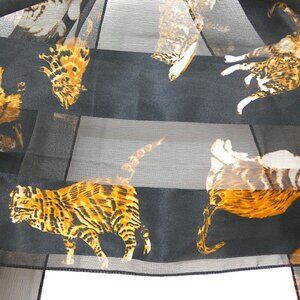 Sheer Cat Print Scarf Black Gold Animal Pattern Lightweight Scarf Y2K Kitsch