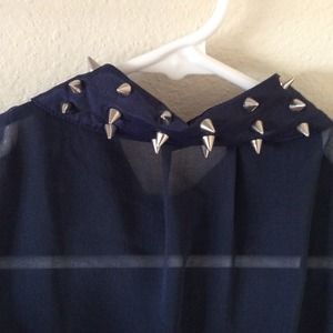 Sheer Chiffon Blouse in Navy with Silver Studs