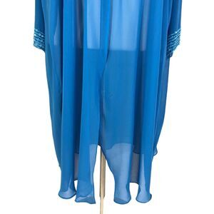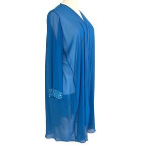 Sheer Chiffon Duster Open Jacket Blouse Sequin Trim Long Sleeves Sz 3X Teal Blue