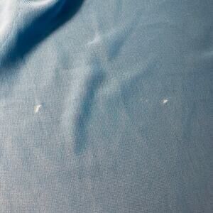 Good pre-owned condition. There are very small white spots on and a few snag lines along the left back leg area of the duster jacket. See last 4 photos.