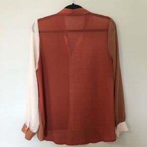 Sheer Color Block Button Down
