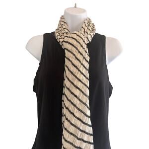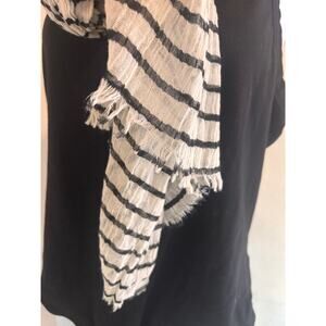 Sheer Cream Black Striped Scarf Raw Hem Spring Fall Transition Minimalist