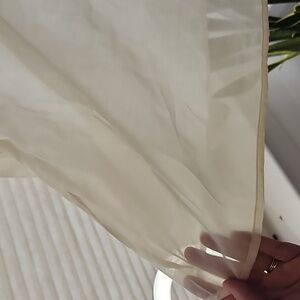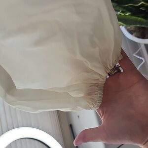 Elegant sheer cream blouse with long sleeves. pearl enclosure in back. Perfect for layering or a chic look. NEW