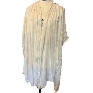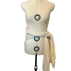 Sheer Cream Scarf with Raw Edge Hem and Silver Threads