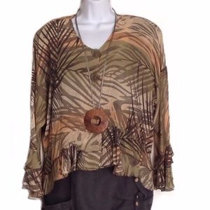 Sheer Cropped Earth Tones Ruffled Lagenlook Blouse