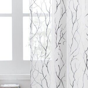 Sheer Curtains 52"W x 84"L White with Silver Tree Branches Grommet Top 2 Panels