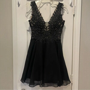 Sheer Embellished Lace Dark Fairy Whimsical Mini Black Formal Dress Sz 9