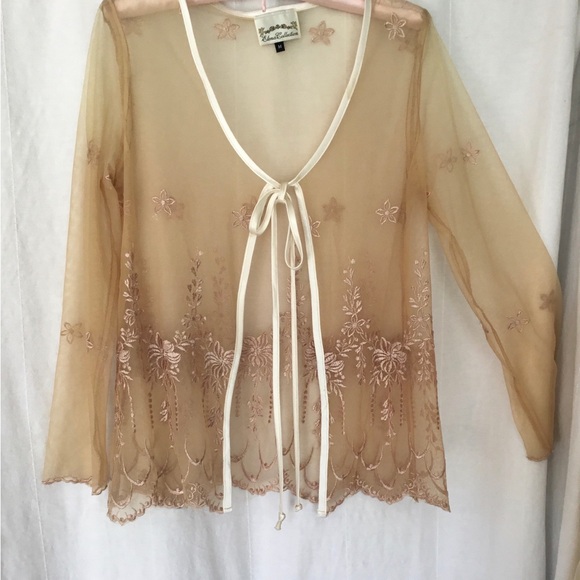 Sheer Embroidered Tan Robe