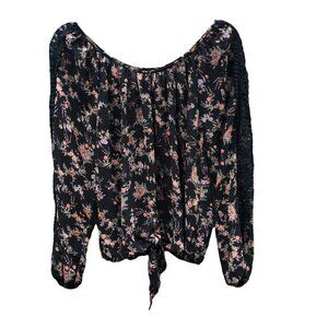Sheer Floral Flowy Boho Crochet Long Sleeve Blouse