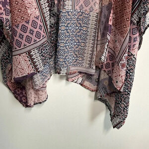 Sheer Floral Patchwork One Size Open Front Kimono Topper Boho Festival Hippie
