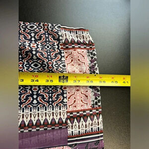 This is a one size fits most patchwork floral pattern, sheer polyester topper/kimono. Great for layering.