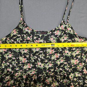 Sheer Floral Print Tank Dress sz Large Tiered Spaghetti Straps Jeans Warehouse
