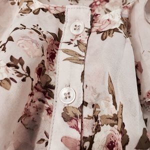 Going to a garden party? This pale lavender sheer floral print blouse from Forever 21 is the perfect fit! Complete with real functional buttons. This top is in excellent condition and has never been worn.