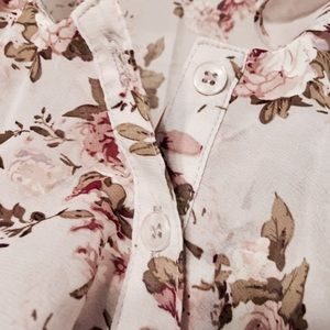 Sheer Floral Ruffle Button Top