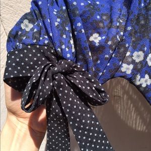 Short Sleeves with contrast polkadot trimming detail. Slim Fit combines with classic confidence and effortless style. Semi sheer fabric and an eye catching print. Pretty/ sweet style. In good condition. •Size: Medium (fits like a small) •Color: Cobalt Blue/ Multi •Fabric Content: 100% Nylon
