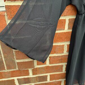 Sheer Flowy Babydoll Tunic Top LG/XL Black Bell Sleeves 3D Flower Fairy Goth