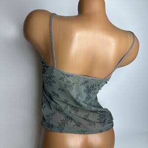 Sheer Green Gray Floral Mesh Cami Lace Trim XS S Y2K Coquette Fairycore Cottage