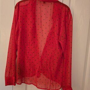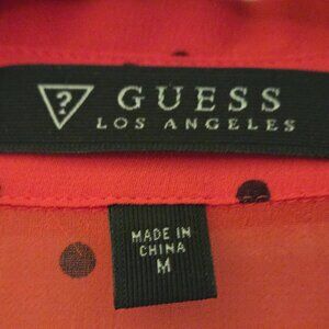 Sheer Guess Red with Black polka Dots women's shirt. Size Medium. Lightly worn. It can be worn over another shirt or by itself. Perfect for any occasion
