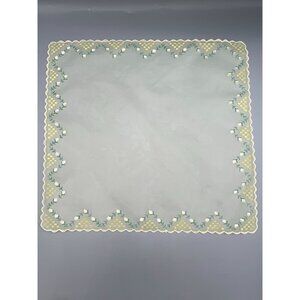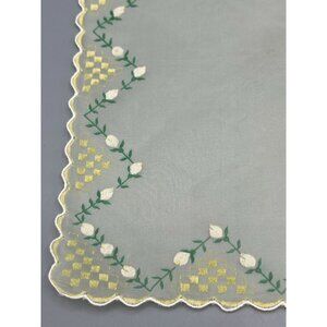 Sheer Hanky Yellow White Rose Rolled Hem Bridal Handkerchief Square 14" Delicate