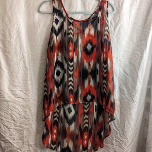 Sheer High-Low Aztec Print Boho Tank