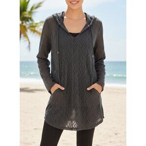 Sheer Hooded Lightweight Knit Tunic Pockets & Geometric Pattern M Whimsigoth