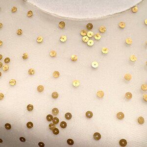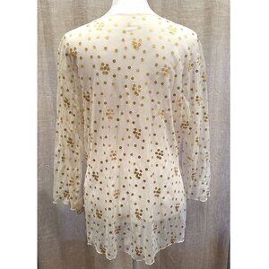 Sheer Ivory Top Embroidered with Gold Sequins Loose-Fitting & Flowing XS