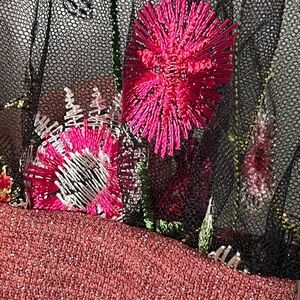 Sheer L/S Top with embroidered flowers and sparkly mauve body.