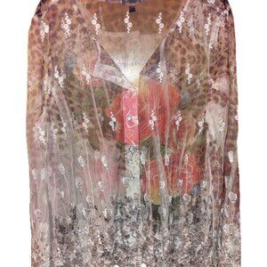 Sheer Lace Embroidered Floral Blouse Women's Size Large Brand : DB Sport Rhinestone Button Detail 2000s Y2K