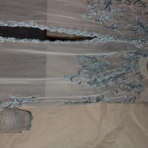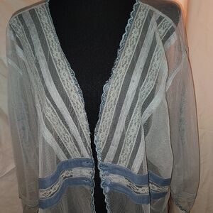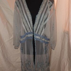 legant sheer kimono with lace and embroidery details. Features a delicate design in soft colors.