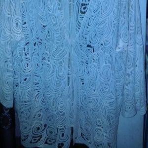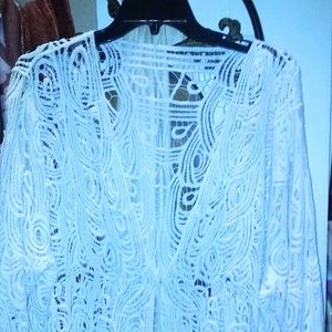 Sheer Lace Fringe V-Neck Cardi w/Button Front