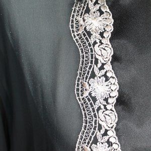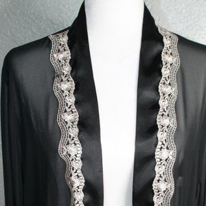 Sheer Lace Robe Duster by Linea Donatella. Sheer black, and white/ivory intricate detailed lace. Beautiful piece, could be mistake for new. No snags. Tag say size small, but could also fit a size medium.