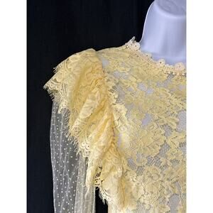 Sheer Lace Ruffle Fashion Trendy Top L Yellow Coquette Romantic Fairy Country