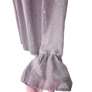 Sheer Long Bell Sleeve Lilac Mauve Flowy Peasant Blouse Gold Pattern Women’s M