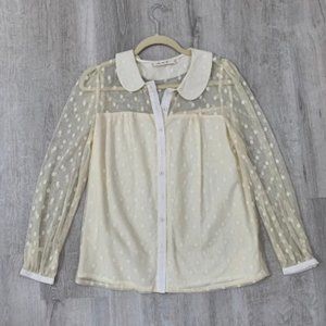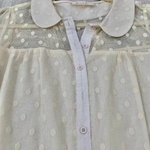 NWT Off white ivory mesh flocked sheer dot long sleeve blouse. Peter Pan collar. Button down. The lining is a linen material that is slightly sheer (see photos).
