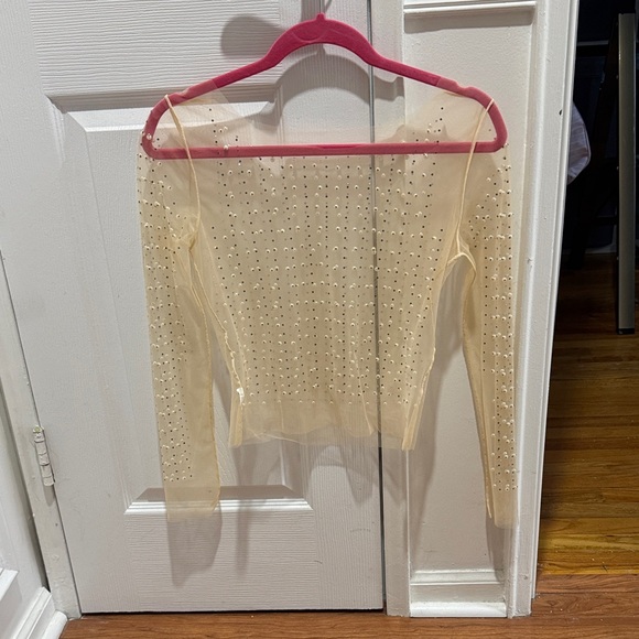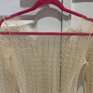 Elegant sheer long sleeve top adorned with sparkling rhinestones. Perfect for a night out or special occasion. Never worn and all beads in tact.