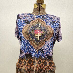 Multicolored t-shirt/blouse. Sheer material. Gorgeous, comfortable, breezy, stretchy.