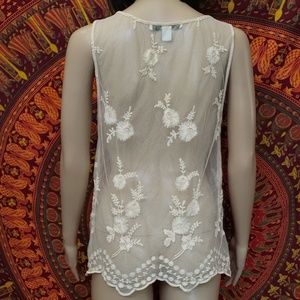 Sheer Mesh Beaded and Embroidered Sleeveless Top Medium