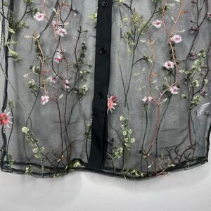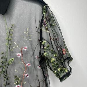 Sheer Mesh Black Embroidered Floral Top Women M Whimsigoth Dark Romantic Y2K 90s