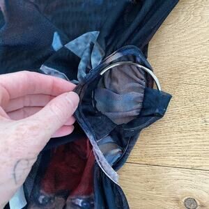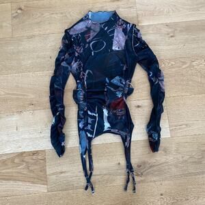 Sheer Mesh High Neck Suspender Belt Long Sleeve Body Top in Black Multi