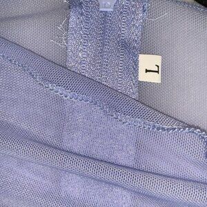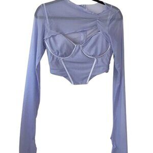 Sheer Mesh Long-Sleeve Corset Style Top With Cutouts Light Blue Size L 95% Polye