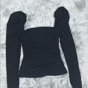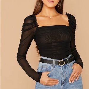 Sheer Mesh Rushed Ruffle Top