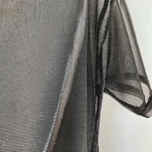 Sheer metallic silver top from Urban Outfitters. A few barely noticeable pulls on the back side. Very cool fabric.