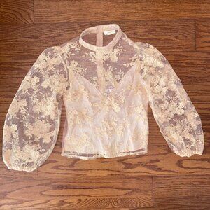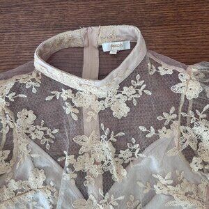 Sheer Mock Neck Long Sleeve Peach Floral Lace Top Built-in Cami Size Medium