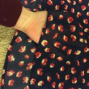 Sheer Navy Blue Floral Print Hi-Low Shirt