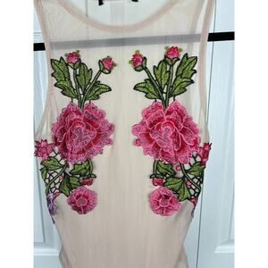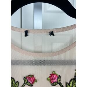 Sheer Nude Sleeveless Bodysuit Applied Rose Applique on Chest Bust 28 (XXS)